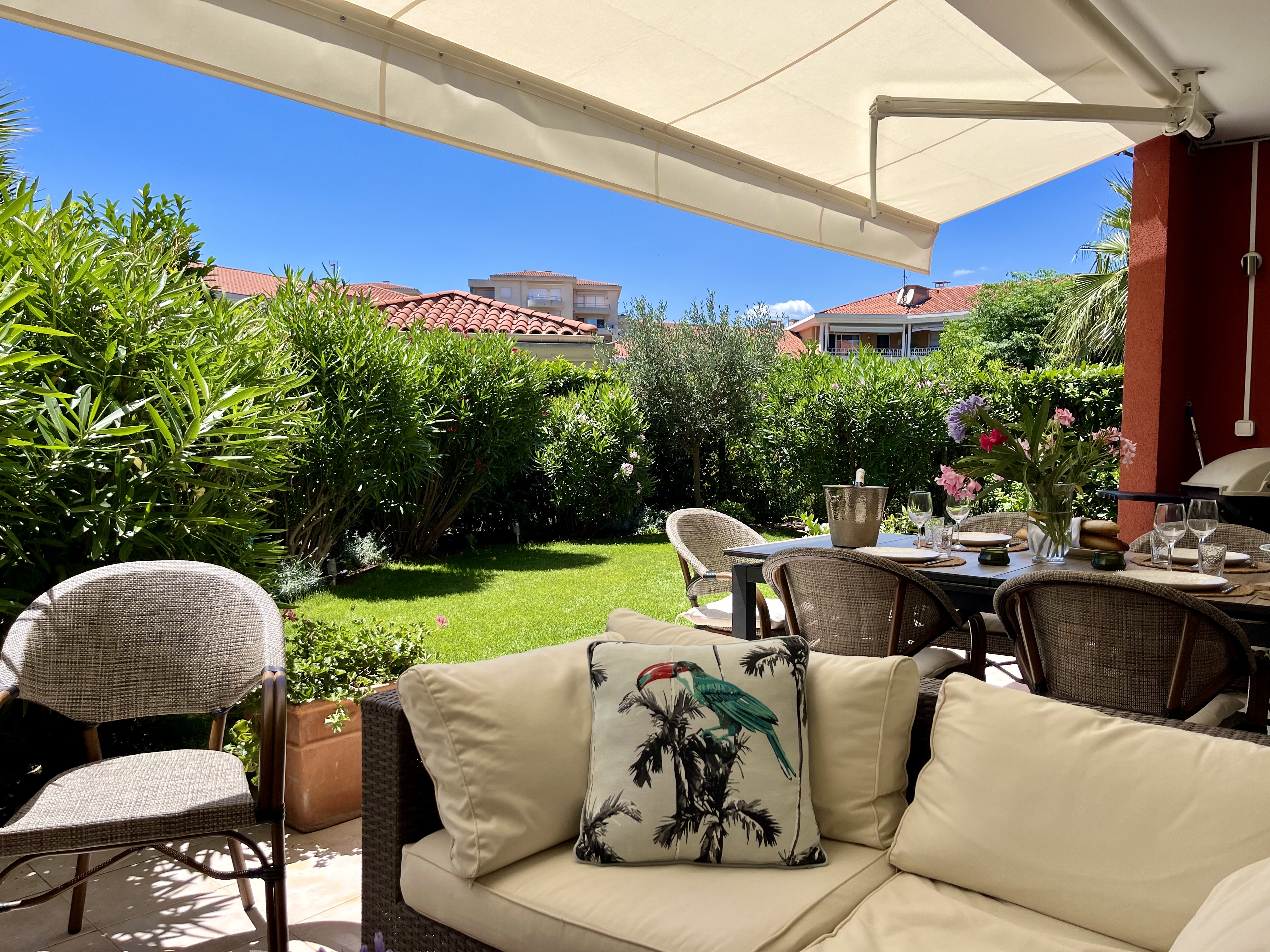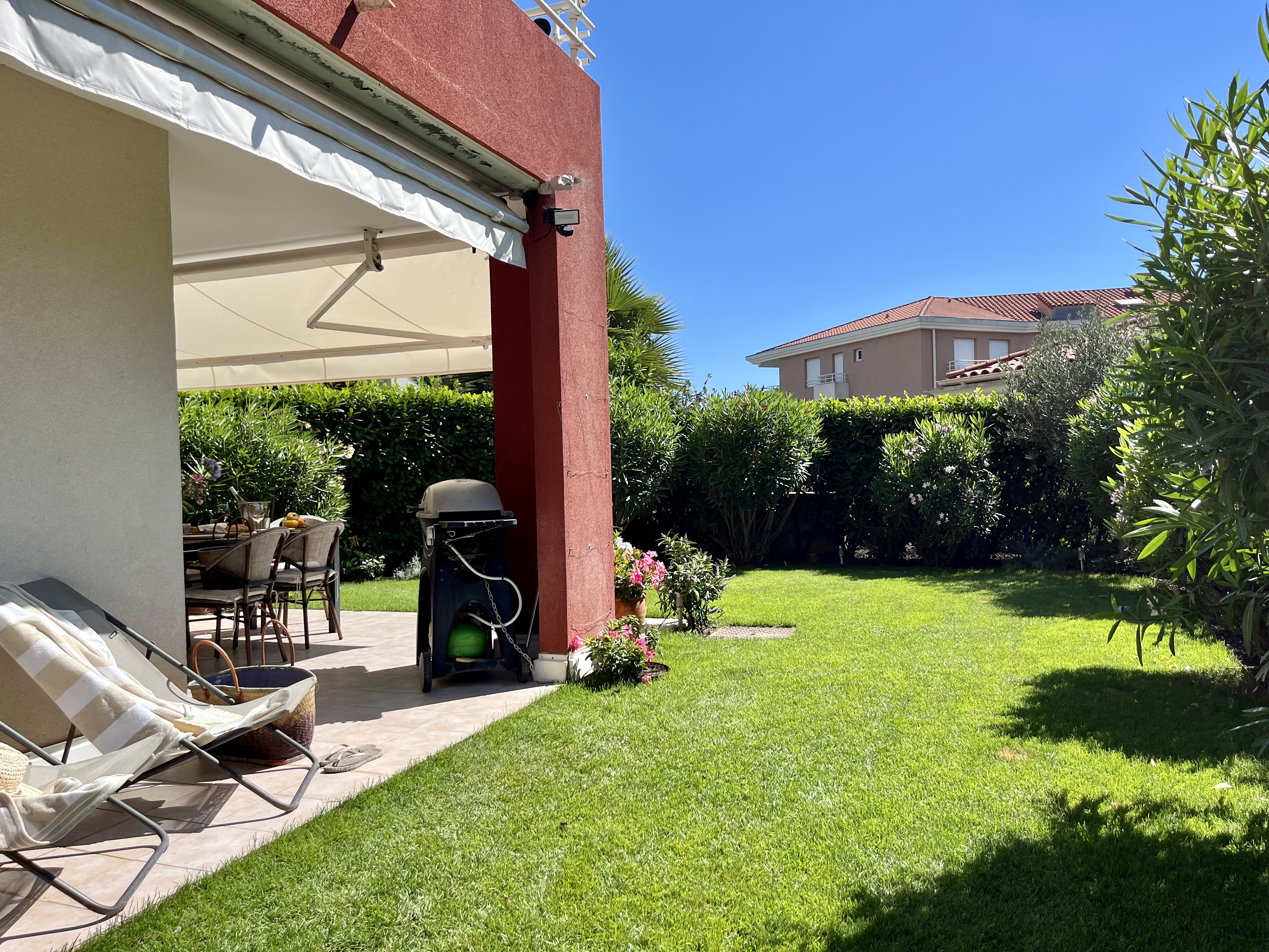 Our garden is surrounded by hedges, so here you have total privacy
