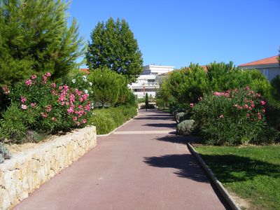 The whole complex has lovely landscaped areas, with lots of flowers, trees and green lawns. There are paved walkways everywhere and cars are not allowed, which makes it perfectly safe for children. For the real french enthusiasts there's a Petanque-area.